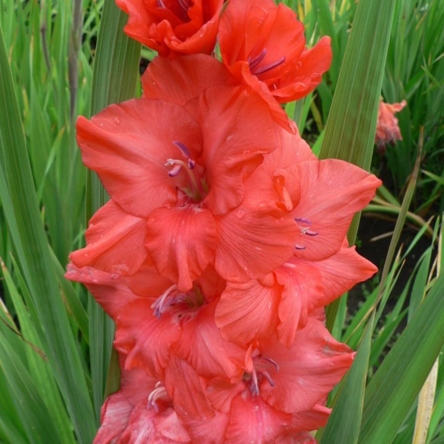 544-С-02, СГ, КИСЕЛЕВ А Л. Ярко-розово-красный гладиолус. Сильная гофрировка, стройный колос.