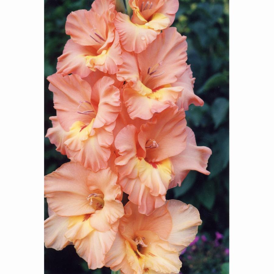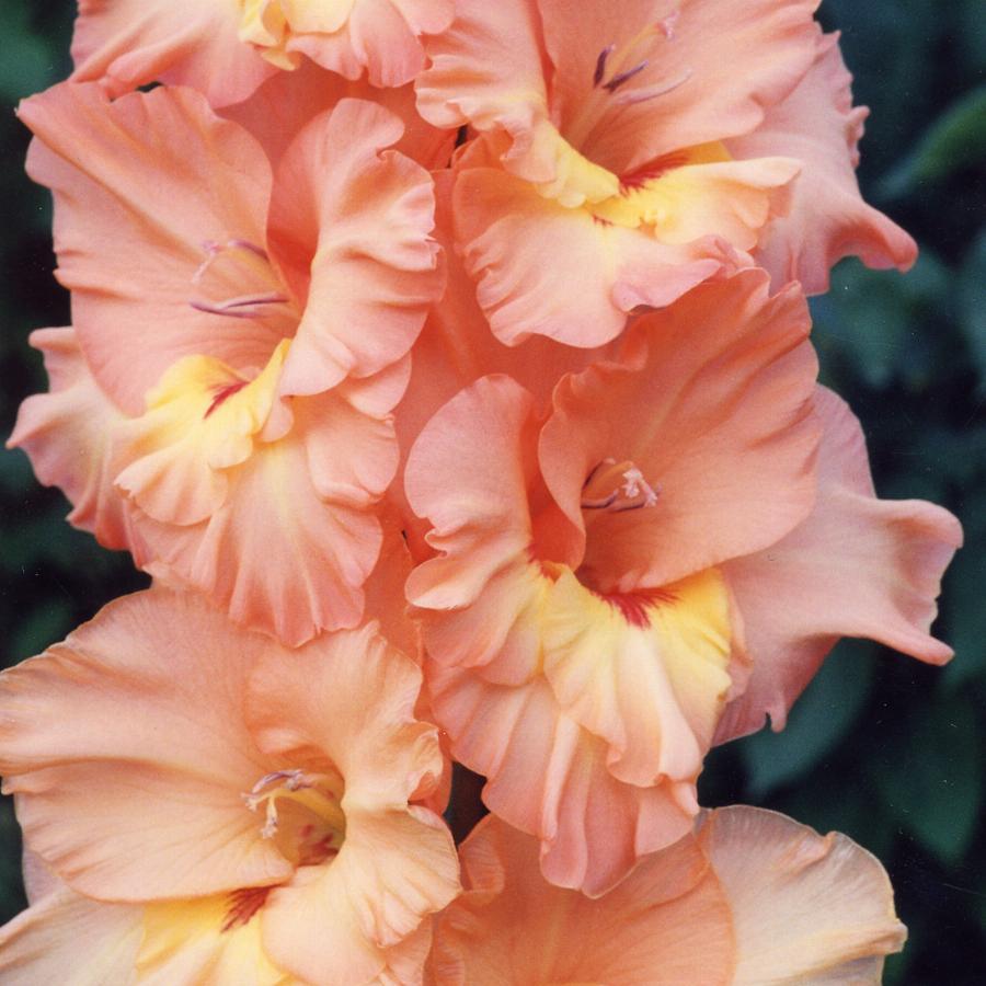545-РС-03, СГ, ДЫБОВ.Светло-лососево-розовый гладиолус с небольшим лимонным посветлением к центру. Гофрировка волнистая. Цветет из детки.