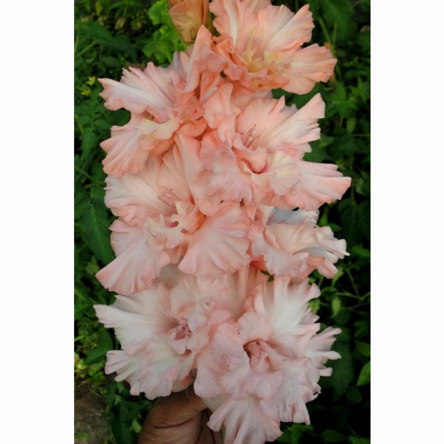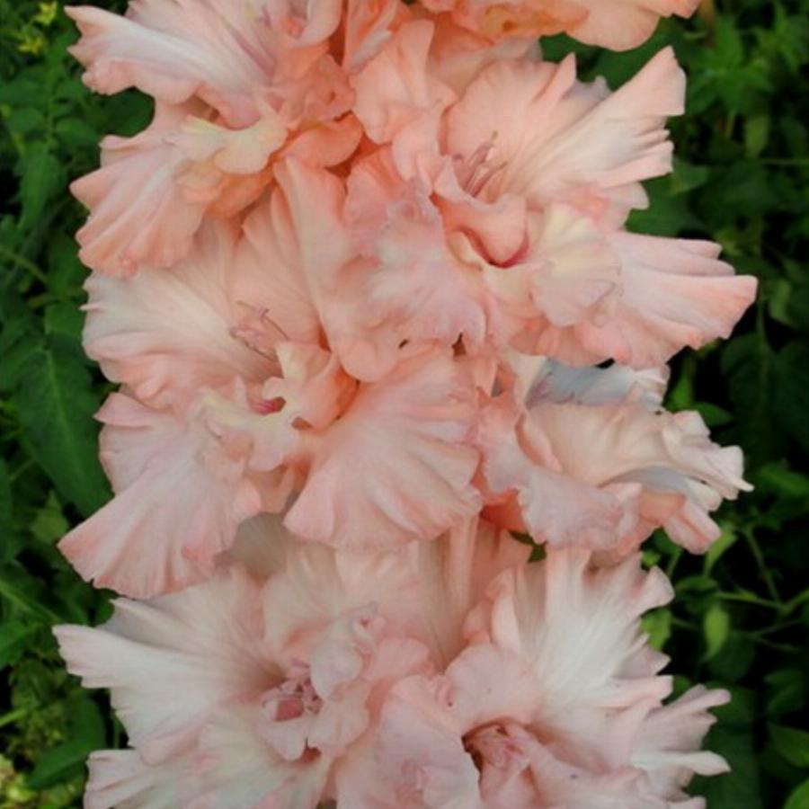 542-РС-94, СГ, ДЫБОВ В Ф. Нежная перламутрово-розовая окраска ровного тона, нижние лепестки гладиолуса в горле чуть высветляются и на этом фоне густо-розовые прожилки.