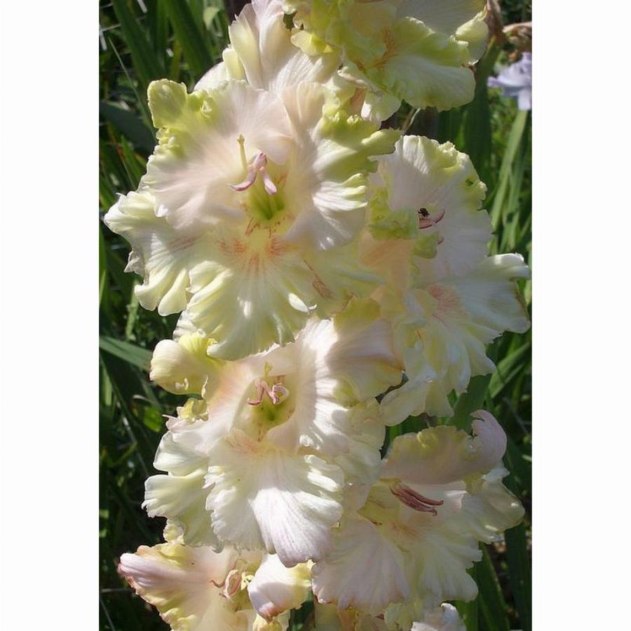 503-С-99 , СГ, ДЫБОВ В Ф. Суперплотные, белые с чуть кремовым оттенком, украшены зеленой каймой и мелкими зубчиками по кромке супергофрированных цветков.