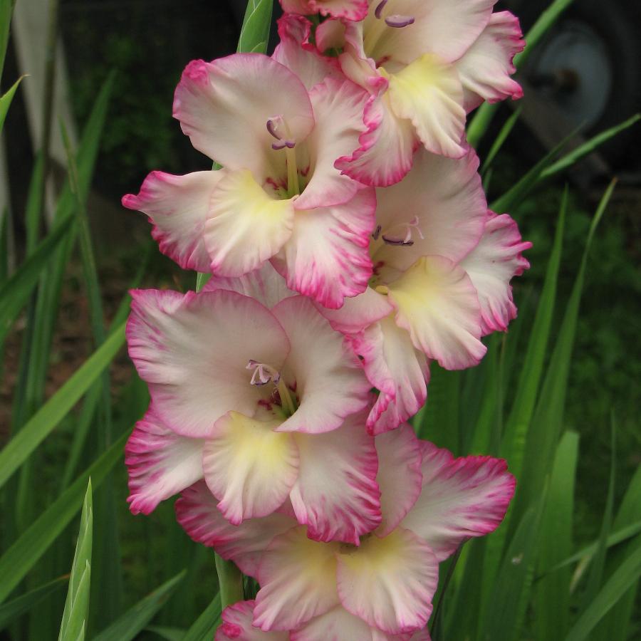465-РС. Хорошо гофрированный, шикарный гладиолус, удивительно нежной расцветки. Цветы, да и сами цветоносы — прочные, замечательно подходят для букетов.