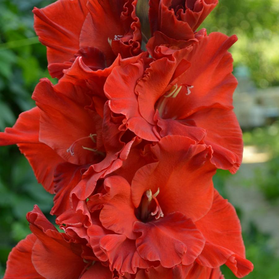 556-С-97, ВАСИЛЬЕВ. Насыщенно-красный гладиолус-гигант с огромными бархатными цветами. Нижний лепесток более тёмной тональности. Очень плотная фактура умеренно гофрированных цветов. Идеально двухрядное соцветие с плотной укладкой. Цветок-праздник!