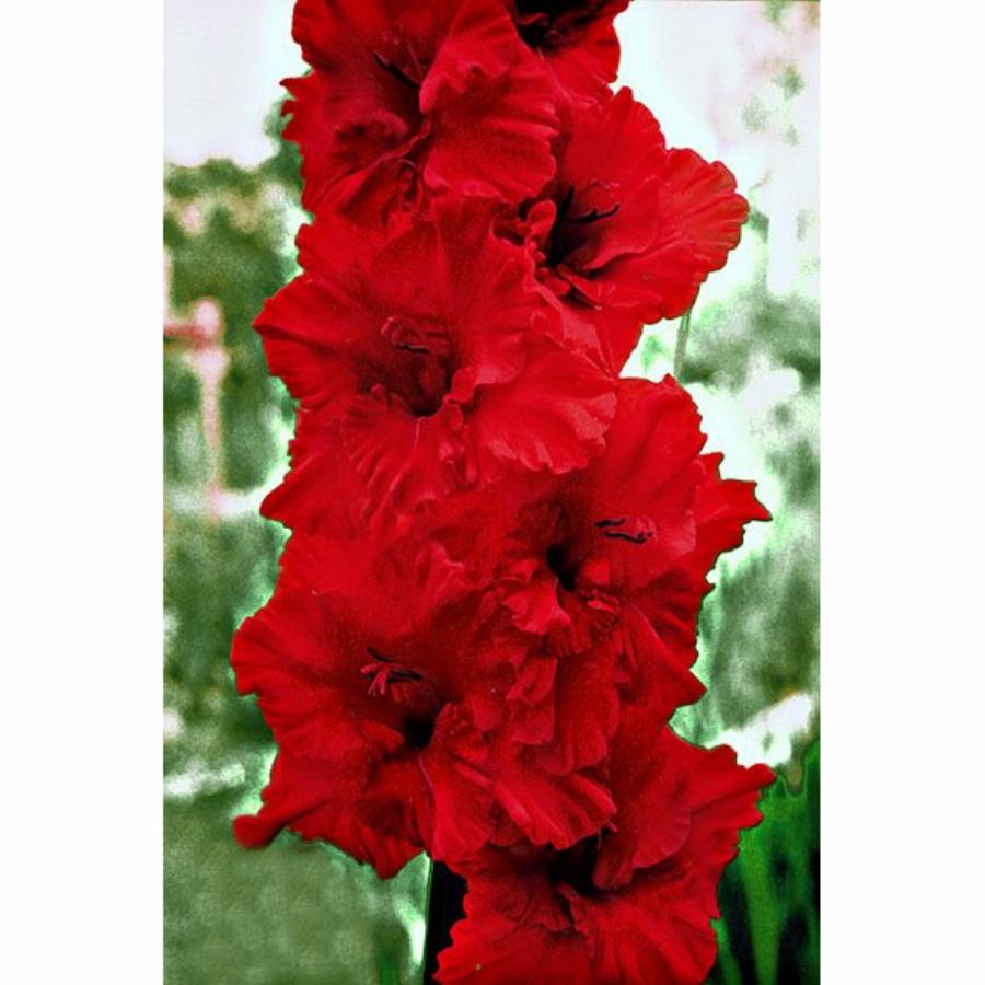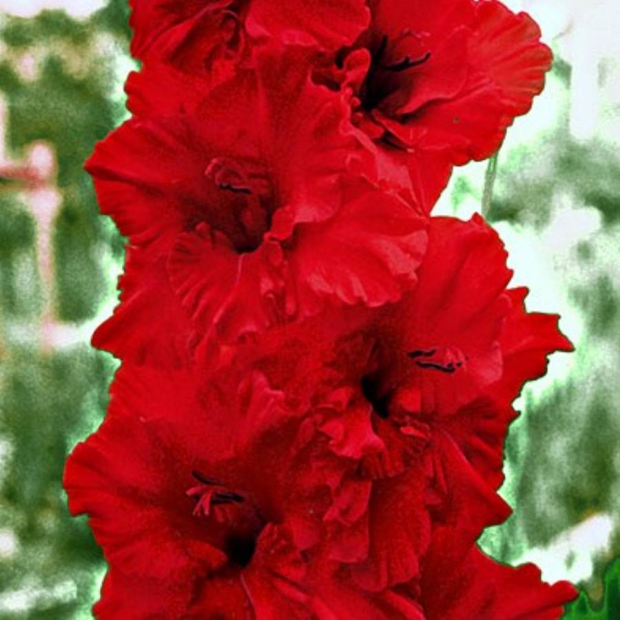 454-Р-07, ЛОБАЗНОВ Очень яркий, красный гладиолус с более насыщенной окраской в центре, на нижнем лепестке небольшая белая стрелочка. Колос прочный, фактура лепестков плотная. Прекрасная ранняя срезка.