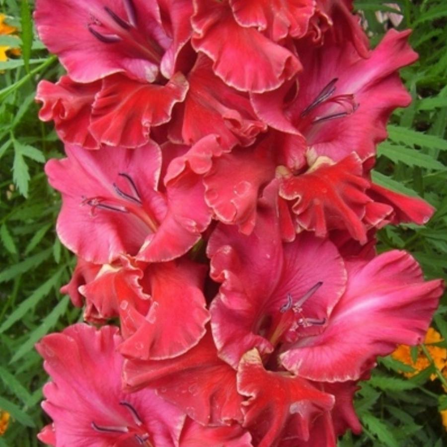 566-РС-04, СГ, 22/9, ДЫБОВ В Ф. Величественный гладиолус с густо-малиновыми приятного тона красиво гофрированными цветами с защипами в горле. Цветы бархатистые, с очень плотной тканью лепестков. В колосе до 9 одновременно открытых цветов! Великолепный насыщенный сорт!