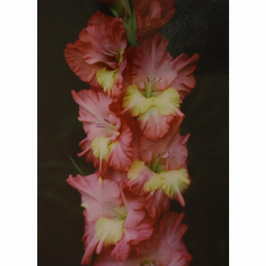 545-РС-06, ССГ, 20/8 КИСЕЛЕВ А Л. Розовый гладиолус с большим золотистым пятном на нижних лепестках. Хорошая срезка. Высота растения 155 см, длина соцветия 70 см, диаметр цветка 14,5 см.