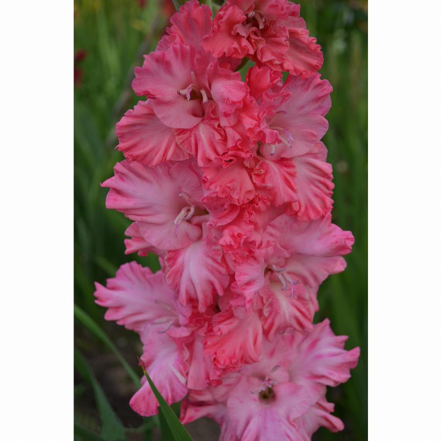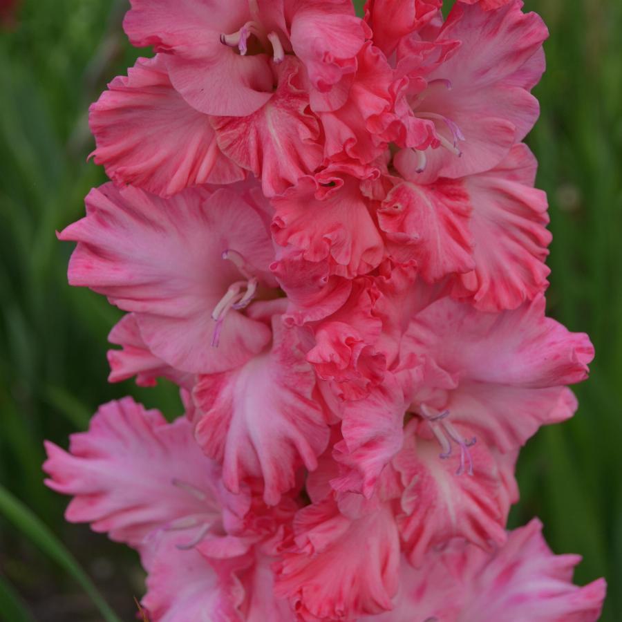 463-С-06, СГ, 24/8 ВАСИЛЬЕВ С А. Ярко-малиновый гладиолус с усилением тона к складчато-гофрированным краям лепестков. Фактура лепестков и укладка цветов в соцветии плотная. Великолепная срезка!