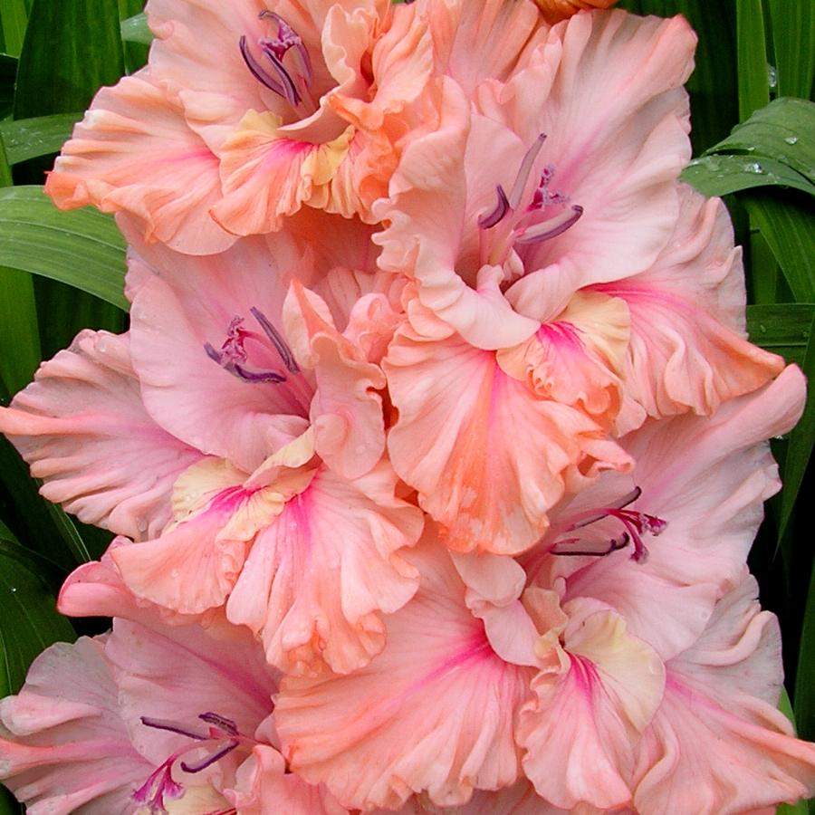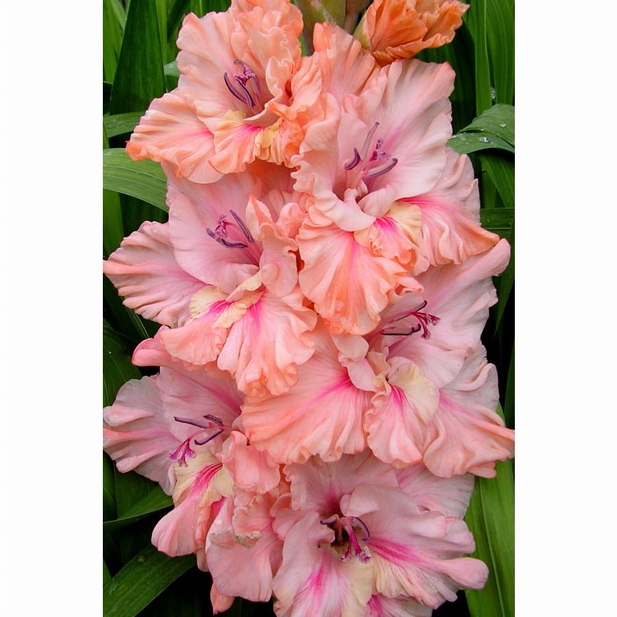 562-РС-03 ДЫБОВ Гладиолус очень нежного, малиново-розового тона с переливами малинового в центре и густо-розового по краям складчатых лепестков. Красивые насыщенно-малиновые тычины. Потрясающая гофрировка глубокими складками.