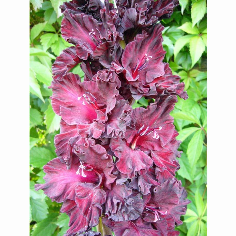 458-С- 08, ССГ, ВАСИЛЬЕВ С А. Гладиолус с чёрно-красными, крупными цветами. Красивая сильная гофрировка мелкими складками. Мощное растение.