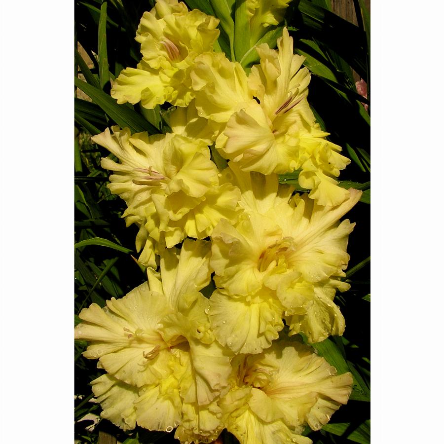 414-СР-02 КИСЕЛЕВ А Л. Сочно-золотисто-жёлтый с розовыми отсветами по лепесткам. Плотный пышный колос. Отличные ростовые качества. Шикарно-красивый сорт. Сильная гофрировка.