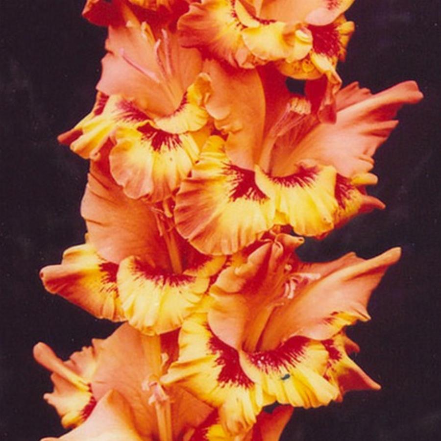 427-С-2011 Васильев, СГ 21/9 130 см.Лососево-оранжевый гладиолус. На трёх нижних лепестках на жёлтом фоне ярко-красные перистые пятна. Новый сорт с ярким сочетанием красок!