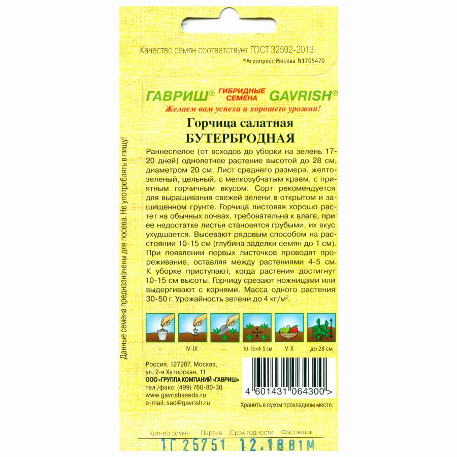 ГОРЧИЦА САЛАТНАЯ БУТЕРБРОДНАЯ 1,0 Г гавриш