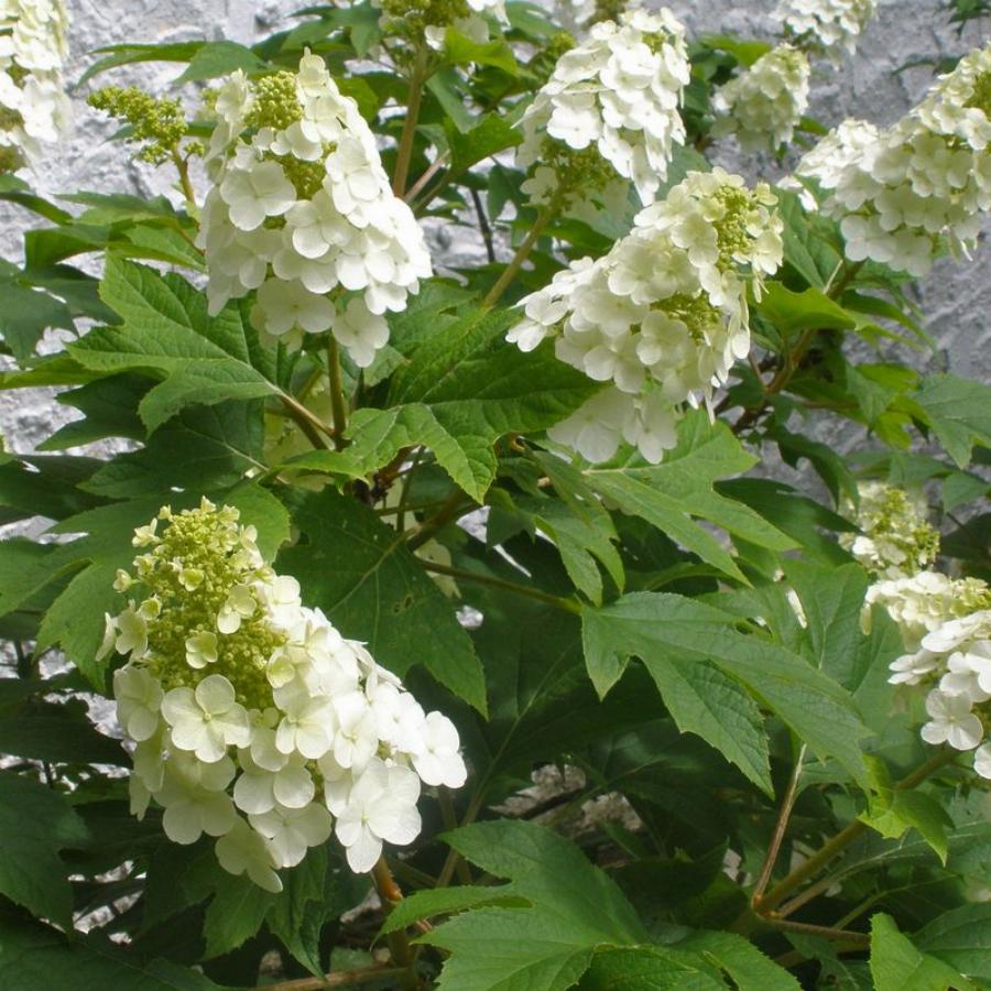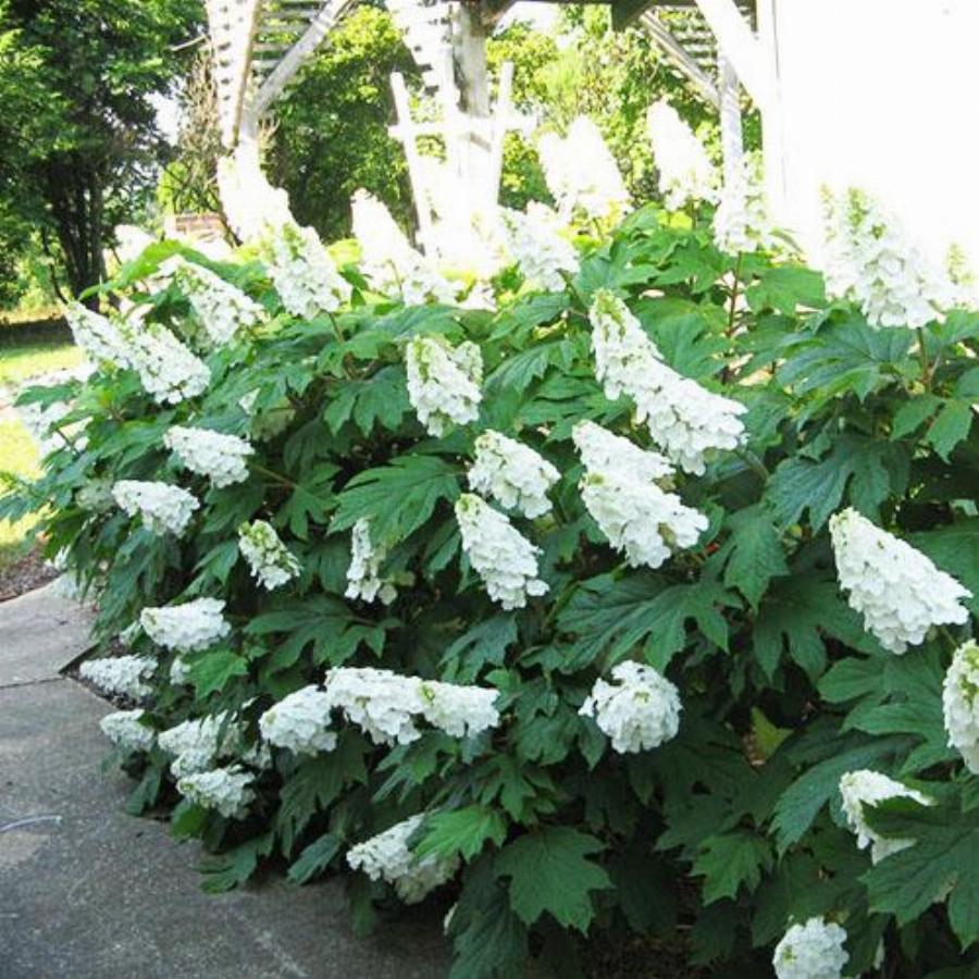 Гортензия дуболистная Snow Giant— очень стильный декоративный сорт гортензий имеет крупные соцветия-метелочки из мелких белых цветочков, собранных в конус . Растение очаровывает своей шикарной кроной, форма которой хорошо держится даже при неблагоприятных погодных условиях. Темно-зеленые листочки обеспечивают культуре изысканность даже при отсутствии цветов. Цветение начинается с июля длится до августа. Цветет на побегах прошлого и нынешнего года. Куст обильноцветущий, разветвленный высотой 1,5-2 м.«Snow Giant» — один из немногочисленных сортов гортензий, предпочитающих расти в полутени или в тени.