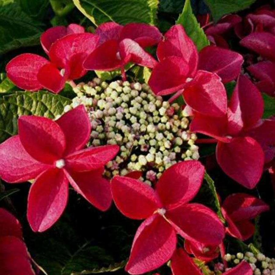 Кустарник высотой до 1.5м с огромными (до 22см!) плоскими соцветиями, состоящими из крупных краевых цветков бордово-красного цвета и мелких розовых цветочков в центре. На кислых почвах окраска прицветников становится пурпурной, почти фиолетовой. Предпочитает влажные, проницаемые, перегнойные почвы, слабокислые или близкие к нейтральным, не переносит известковые. Посадочную яму следует заполнять смесью торфа и перегноя. На зиму укрывают как розы, оберегая от промерзания цветочные почки, так как она цветет только на прошлогодних побегах. Цветёт с июля до заморозков.