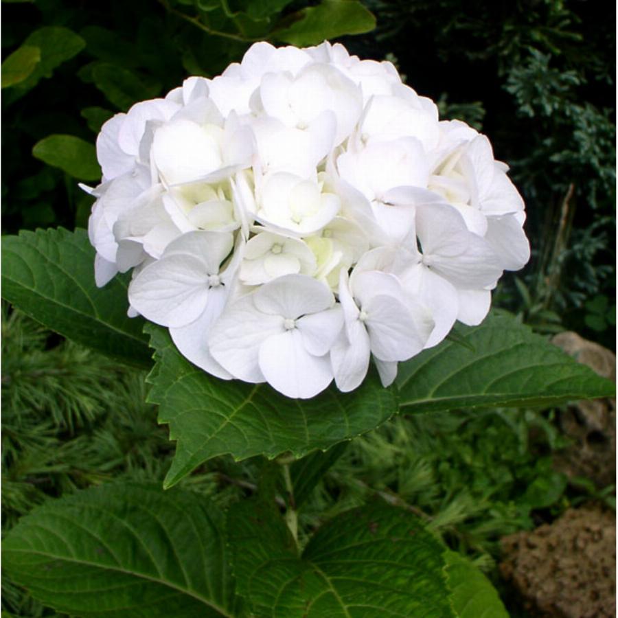 Красивоцветущий французский сорт. Лепестки цветков заострённые, белые с голубоватым глазком в начале цветения. По мере отцветания розовеют. В средней полосе России требует очень тщательного укрытия на зиму.Высота 120-150 см