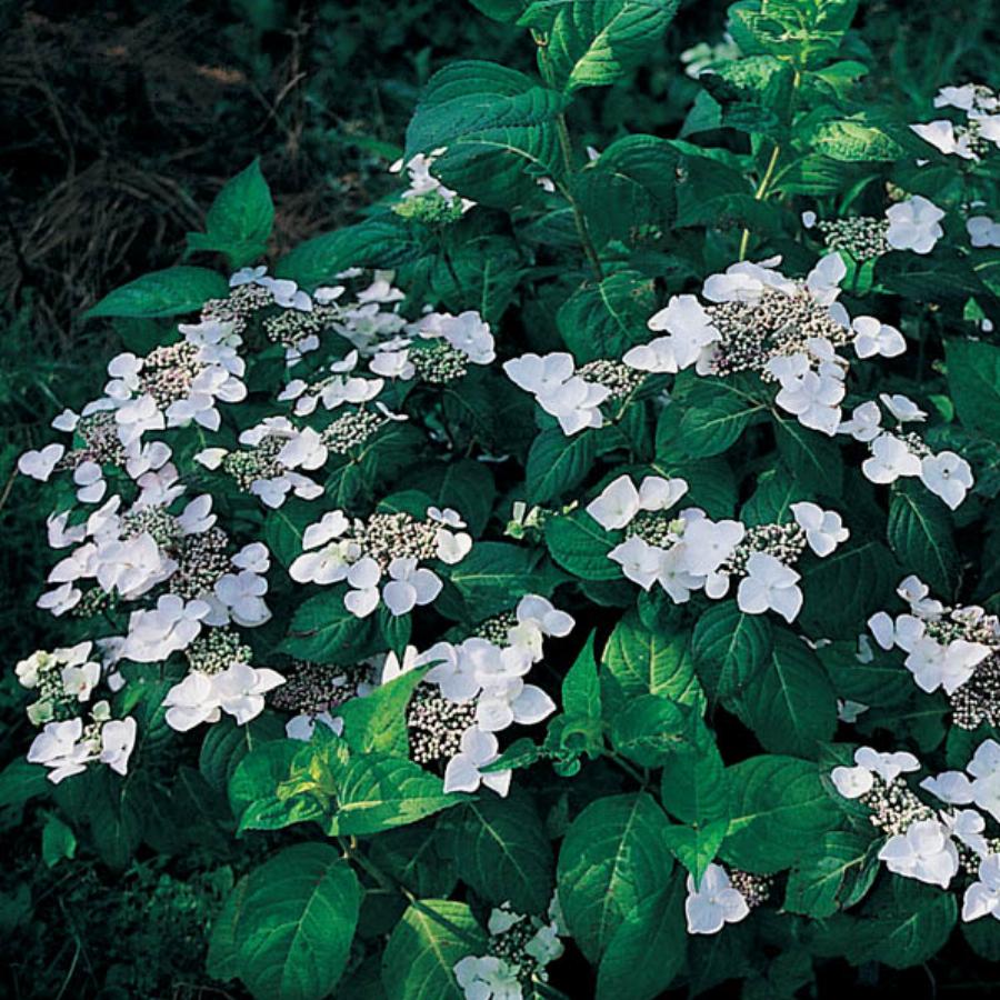 Гортензия крупнолистная — White(Teller). Красивый декоративный кустарник с фантастически эффектными цветочными головками. Отличается прямостоящими побегами. Листья широкие овальные к осени изменяют окраску с зеленых на пурпурные. Цвет соцветий белый. Соцветия крупные до 18 см в диаметре. Зимует только с очень хорошим укрытием.