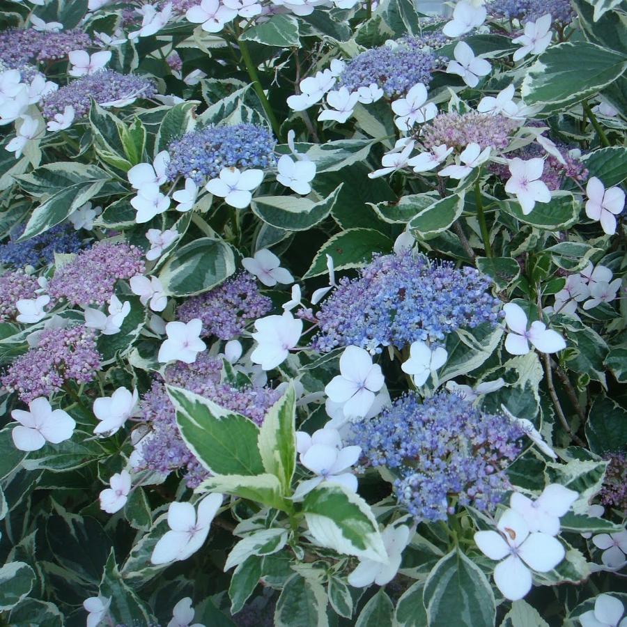 Кустарник высотой до 1 м, шириной до 1 м с трехцветной окраской листьев, которые покрыты зелеными, зеленовато-белыми, серыми и бледно-желтыми пятнами и полосками. В конце лета зацветает крупными белыми цветками и мелкими в середине розовыми. Цветки собраны в щитковидные соцветия. Мирится с небольшим затенением, морозостойкость до -21 град. Требует укрытия на зиму.
