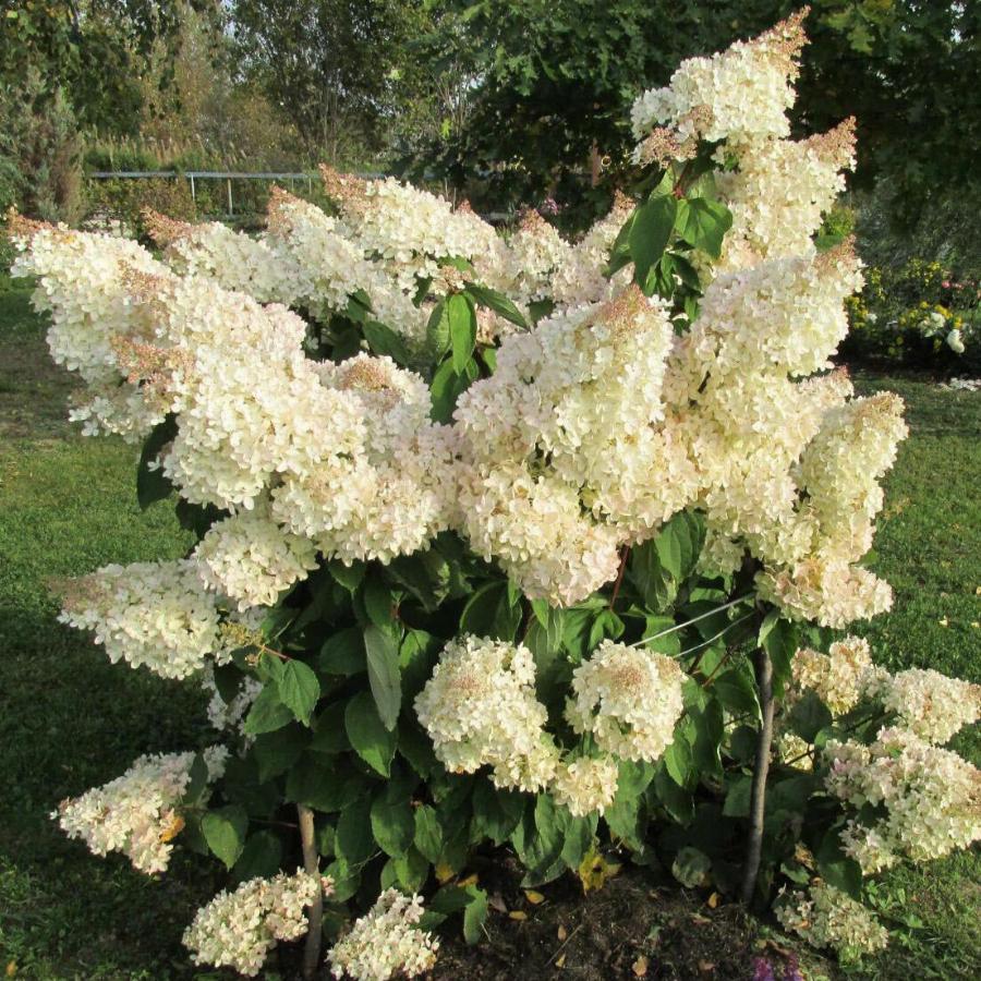 Куст высотой 1,8-2,2 м и шириной 2-2,2 м, раскидистый, с веерообразной кроной, в возрасте старше 10 лет может достигать 3 м. В первые годы жизни тебует подвязки. Цветение продолжительное и обильное (июль-сентябрь). Соцветие-крупная кисть широкопирамидальной формы. Цветки стерильные, белые с слегка кремоватым оттенком, иногда розовеют при отцветании. Длина соцветий 25-35 см. Необходимы плодородные, слабокислые почвы, регулярные подкормки, хороший дренаж. Зимостойкость:-38 С.