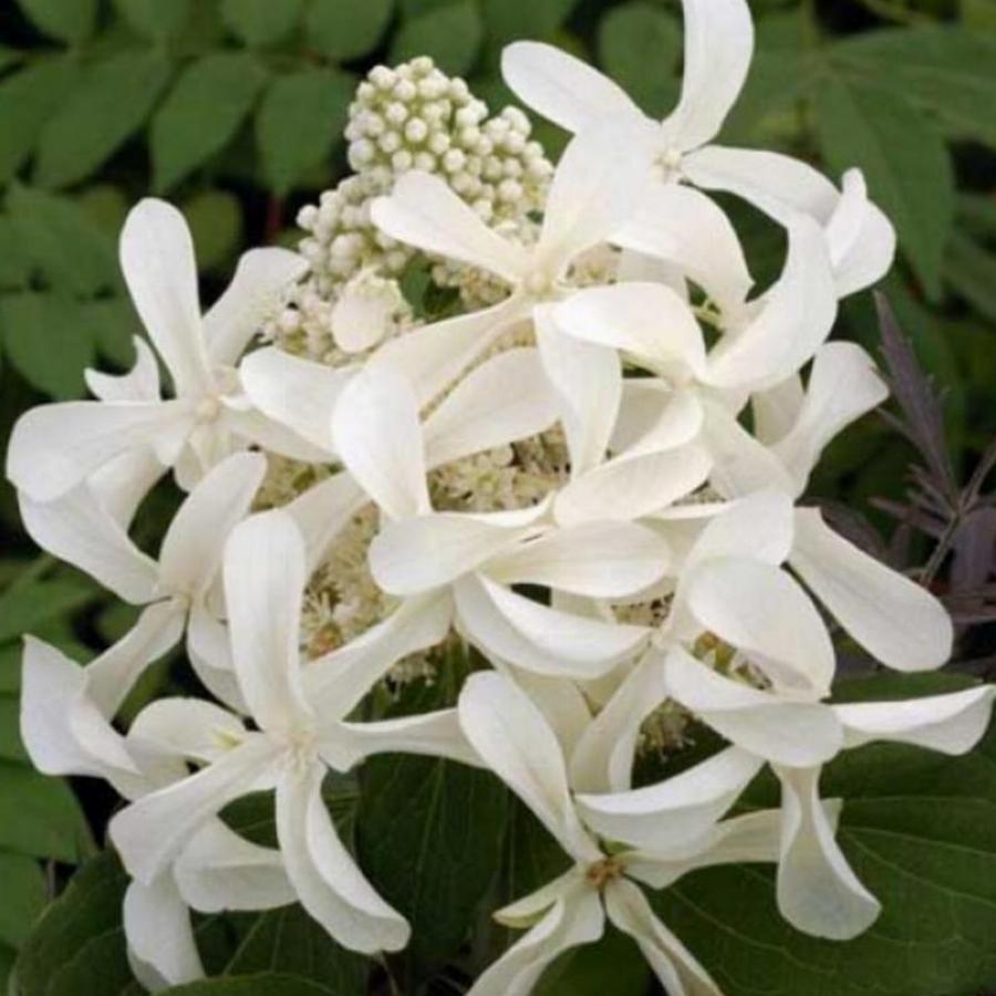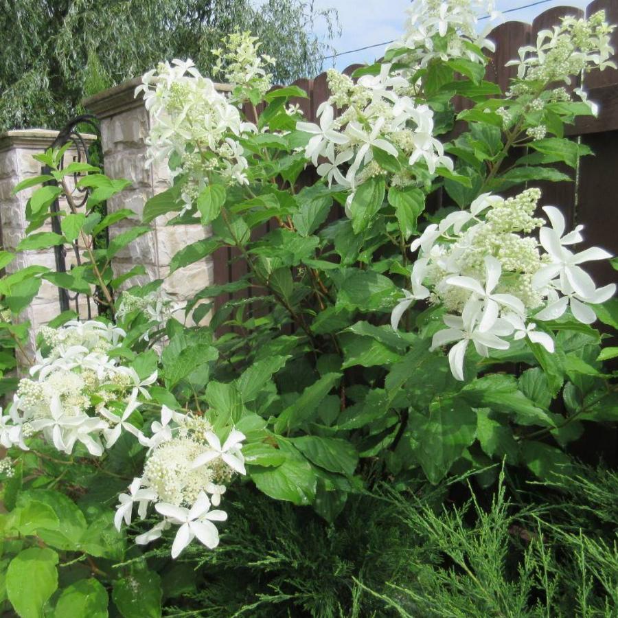 Куст высотой 2,3-2,8 м и шириной 2,2-2,5 м. Быстрорастущий высокорослый сорт. Побеги прочные, прямые, не требуют подвязки. Цветение (июль-сентябрь). Соцветия комбинированные, в форме небольшой кисти, состоят из цветков двух типов. Стерильные-в форме пропеллера, с удлиненными, слегка закрученными у основания лепестками, крупные (5-7 см в диаметре). Сидят на длинных цветоножках. Фертильных цветков большинство (до 70%). Цветки сохраняют белую окраску. Длина соцветий 10-15 см. Требует ежегодной короткой обрезки. Растет как в тени, так и на солнце. Зимостойкость:-35 С.