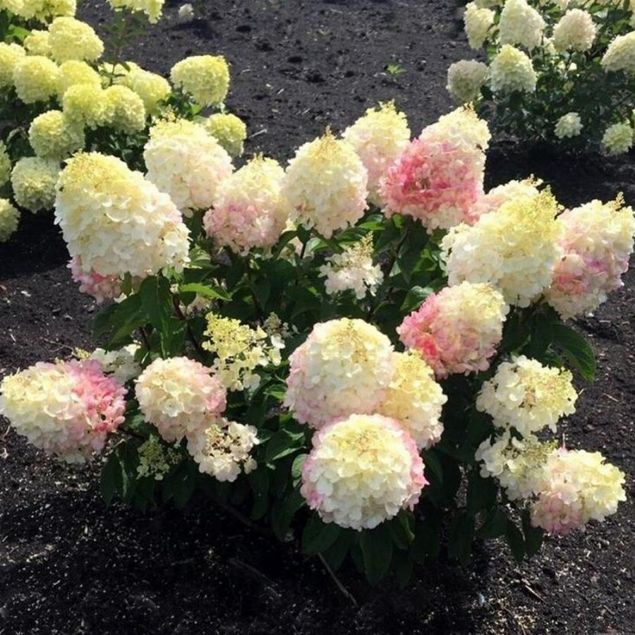 Куст высотой 0,6-0,8 м и шириной 0,6-0,7 м. Компактныйй куст. Побеги прочные, отлично держат соцветия. Цветение (июнь-сентябрь). Соцветия-крупные метелки пирамидальной формы с слегка заостренной вершиной, состоят из стерильных цветков. В начале ослепительно-белые и кремовые, к концу цветения прибретают легкие розоватые оттенки в нижней части соцветия. Длина соцветий 15-20 см. Растет на солнце и в полутени. Зимостойкость:-30 С.
