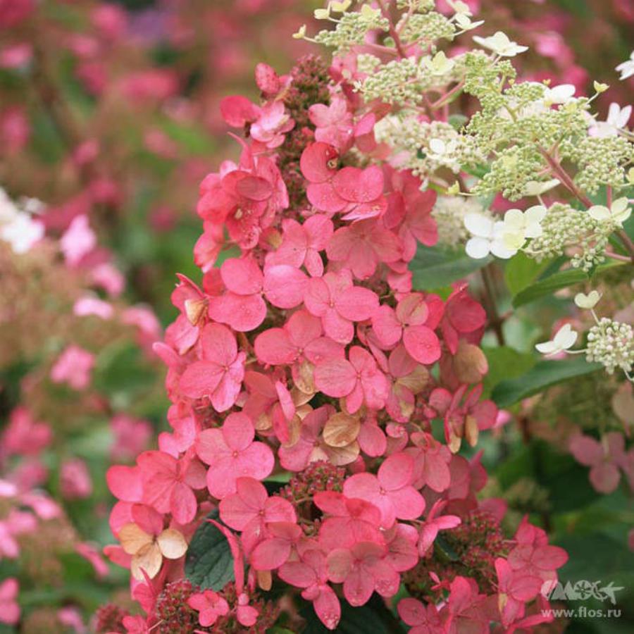 Куст высотой 1,7-2 м и шириной 1,6-1,8 м. Побеги почти неразветвленные. Цветение (июль-сентябрь). Соцветия длинные узкопирамидальные, состоящие из стерильных и фертильных цветков в соотношении 1:1. Стерильные цветки крупные, расположены равномерно. Цветкиначинают распускаются белыми, далее розовеют, к осени становятся темно-розовыми. Длина соцветий 25-30 см. Почвы предпочитает плодородные, дренированные и слабокислые. Растет как на солнце, так и в тени. Зимостойкость:-32 С.
