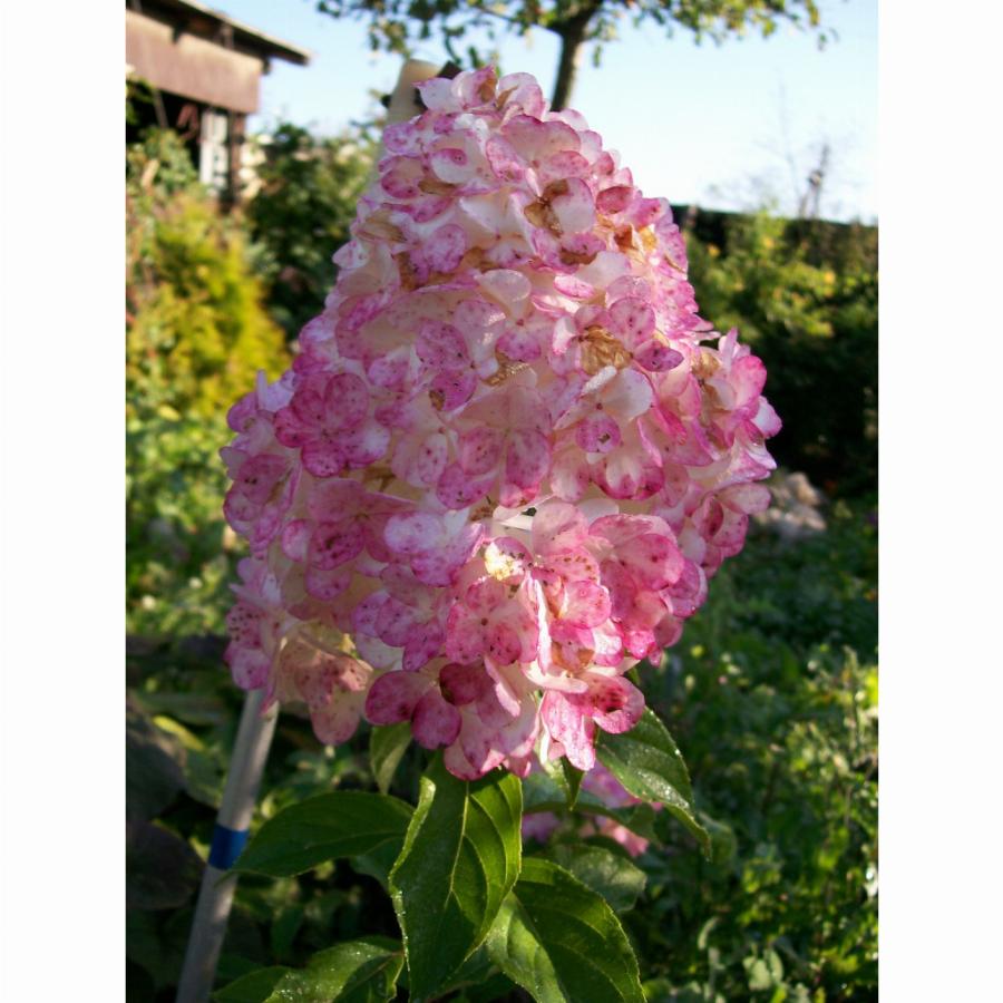 Куст высотой 1,8-2,2 м и шириной 1,2-1,5 м. Прямостоячие прочные побеги, но недостаточно прочные чтоб удержать мощные соцветия, куст может разваливаться. Цветение продолжительное и обильное(июль-октябрь). Соцветие-плотная широкопиромидальная метелка с 2-3 боковыми выступами. Стерильные цветки в начале молочно-белые, затем нежнейшего розового оттенка, к концу цветения становятся почти вишневыми. Длина соцветий 25-30 см. При сильной обрезки метелки могут достигать 40-50 см. Сорт очень выносливый,зимостойкий и неприхотливый. Зимостойкость:-30 С.