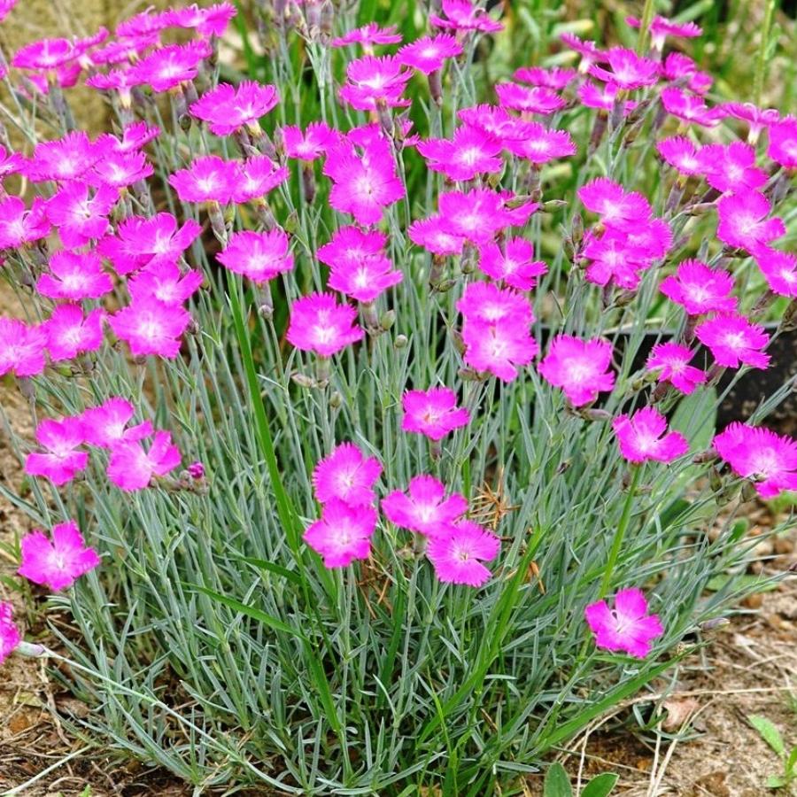 Многолетнее растение, образует рыхлую подушку высотой около 25 см. Листья узкие, линейные, сизовато-голубые. Цветки простые, белые, розовые, карминовые, душистые, по 2-3 на концах цветоносов. Цветет с конца июня 35-40 дней