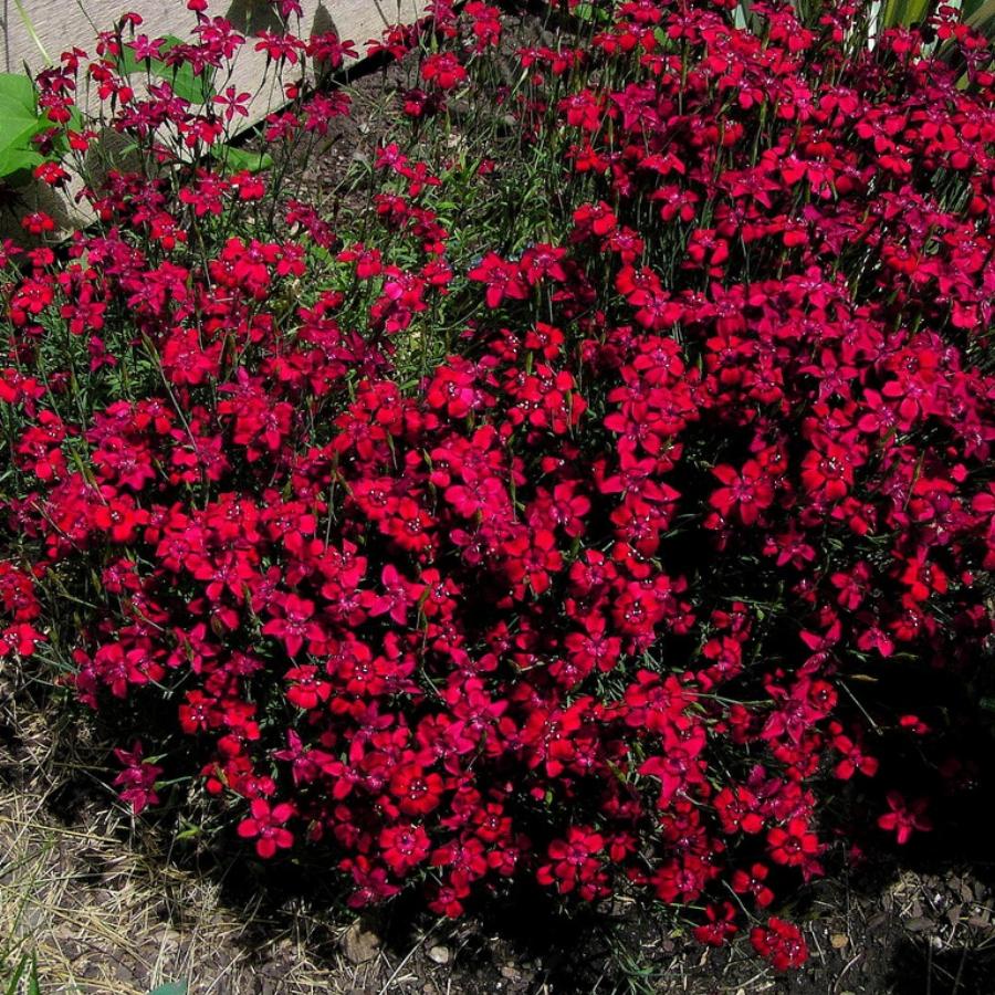 Размер : Высота цветоносов — 10-30 см, диаметр куртины — до 40 см. Листья : Листья мелкие, темно-зеленые. Цветение : Цветет с июня по сентябрь, цветки карминно-красные. Плоды : Коробочка с семенами. Рост : Интенсивный. Корневая система : Стержневая, зветвленная. Почва : Легкая песчаная бедная питательными веществами почва. Декоративность : Во время цветения. Морозостойкость : Зимостойка. Отношение к свету: Светолюбива, теневынослива
