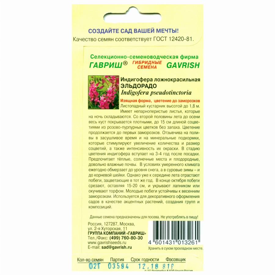 ИНДИГОФЕРА ЛОЖНОКРАСИЛЬНАЯ ЭЛЬДОРАДО 0,2 Г гавриш