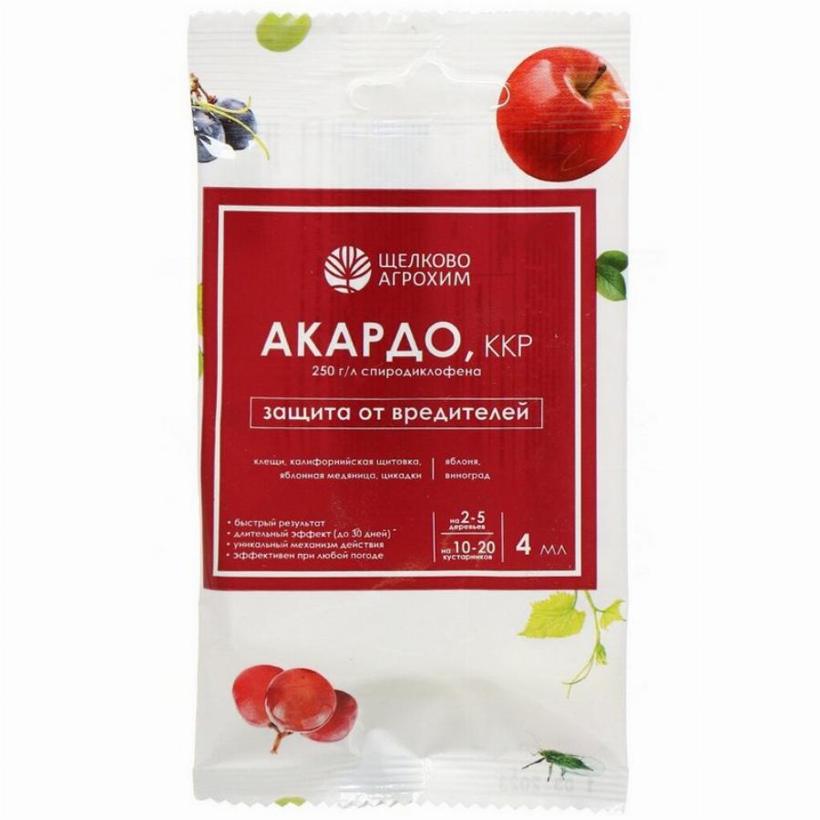 Инсектицид Акардо — контактный инсектоакарицид нового химического класса для борьбы с клещами и другими вредителями на яблоне и винограде. Мощнейший акарицидный эффект достигается за счет действующего вещества нового химического класса в инновационной формуляции.