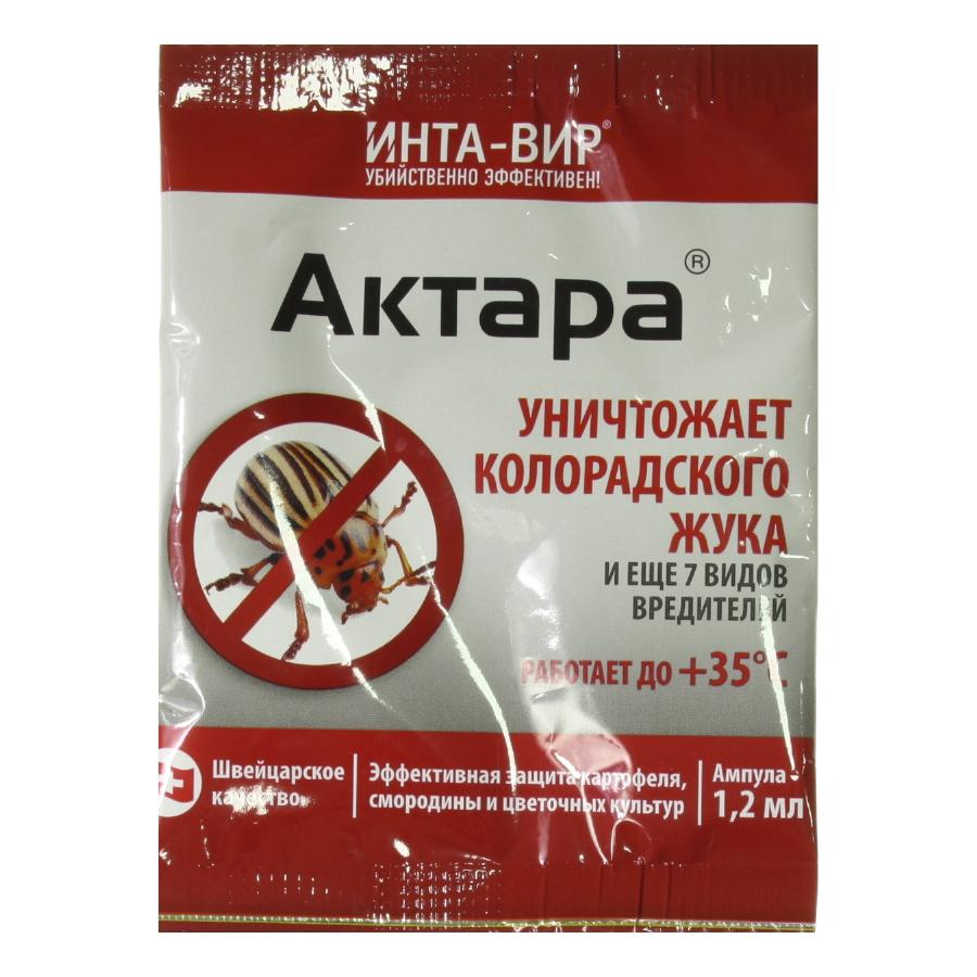 Актара-инсектицид кишечно-контактного действия, обладает трансламинарной активностью. При внесении в почву у препарата проявляется системное действие. Благодаря способности перераспределения по листу и передвижению по ксилеме «Актара» хорошо подавляет цикадок, тлей, белокрылок, некоторых видов щитовок и ложнощитовок, жуков и других насекомых. Симптомы воздействия препарата на насекомых проявляются уже через 15-30 минут после контакта препарата с тлями, и через 1 час у белокрылки. Насекомые перестают питаться и вытягивают стилеты из тканей листа, усики вытягиваются вперед. Полная гибель проявляется через 1 день, но на протяжении этого периода насекомые уже не питаются.