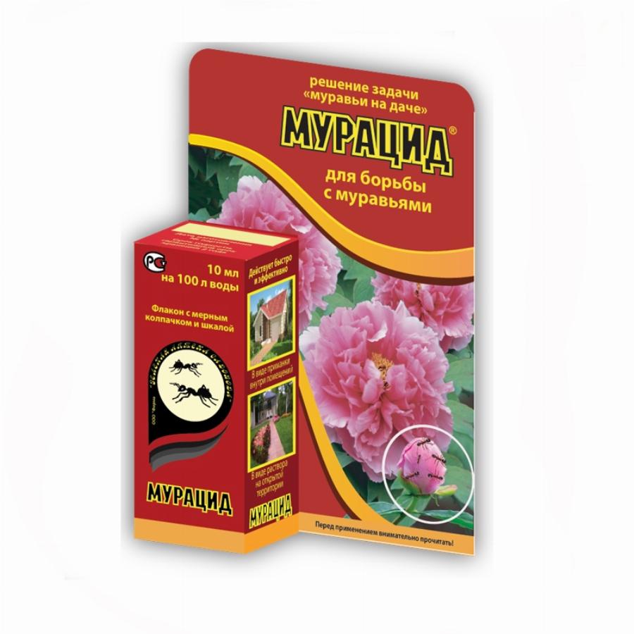 Эффективный инсектицид, обладающий сильным контактным и кишечным действием. Гибель муравьев наступает в течение 2-4 дней после обработки. Активность препарата сохраняется 2-3 месяца, поэтому на обработанных участках муравьи не устраивают новые гнезда. Мурацид обладает высокой эффективностью даже в холодную погоду при низких положительных температурах. Мурацид не причиняет никакого вреда растениям, дождевым червям и почвенной микрофлоре.