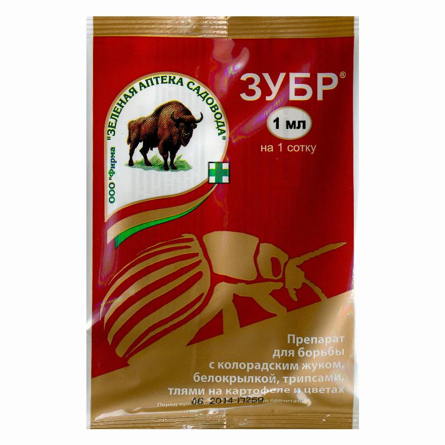 Зубр очень эффективен против колорадского жука. Устойчивости к нему у вредителей нет, поэтому действует Зубр безотказно. Препарат обладает острым контактно-кишечным действием на насекомых. Зубр действует быстро. Гибель вредителей наступает уже через несколько часов. Максимальный эффект проявляется в 1-2 сутки после применения Зубра и сохраняется до 4 недель. Причина столь длительного действия препарата Зубр, а, следовательно, и его большая надежность объясняется системным действием. Зубр не задерживается на листьях, а быстро проникает внутрь, после чего ему не страшны никакие внешние воздействия (ни жара, ни холод, ни дождь). Питаясь такими листьями, вредители получают смертельную дозу и гибнут. Зубр также высокоэффективен против сосущих вредителей (тли, трипсов, белокрылки).