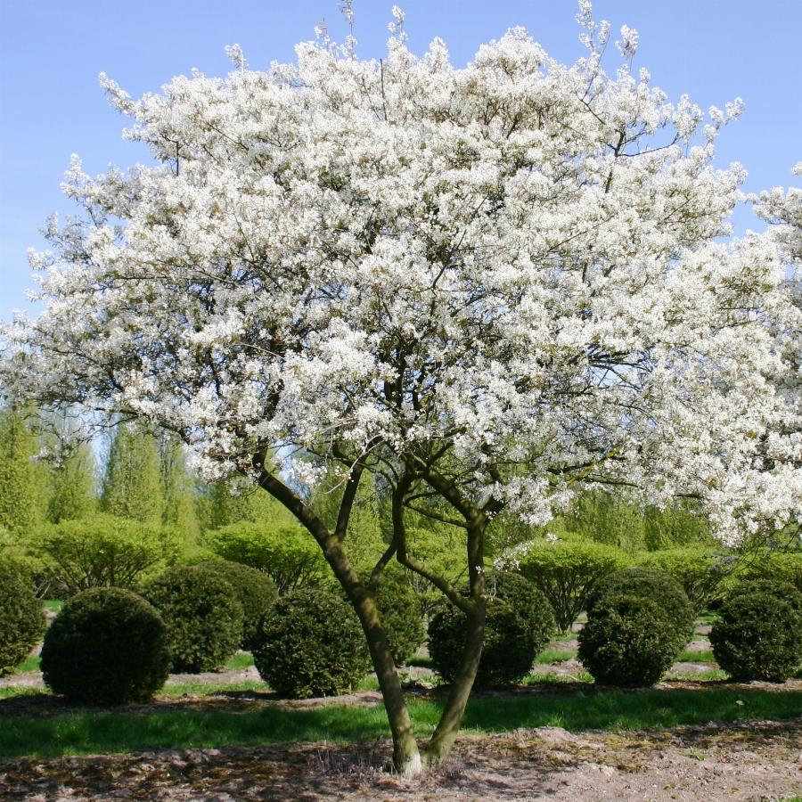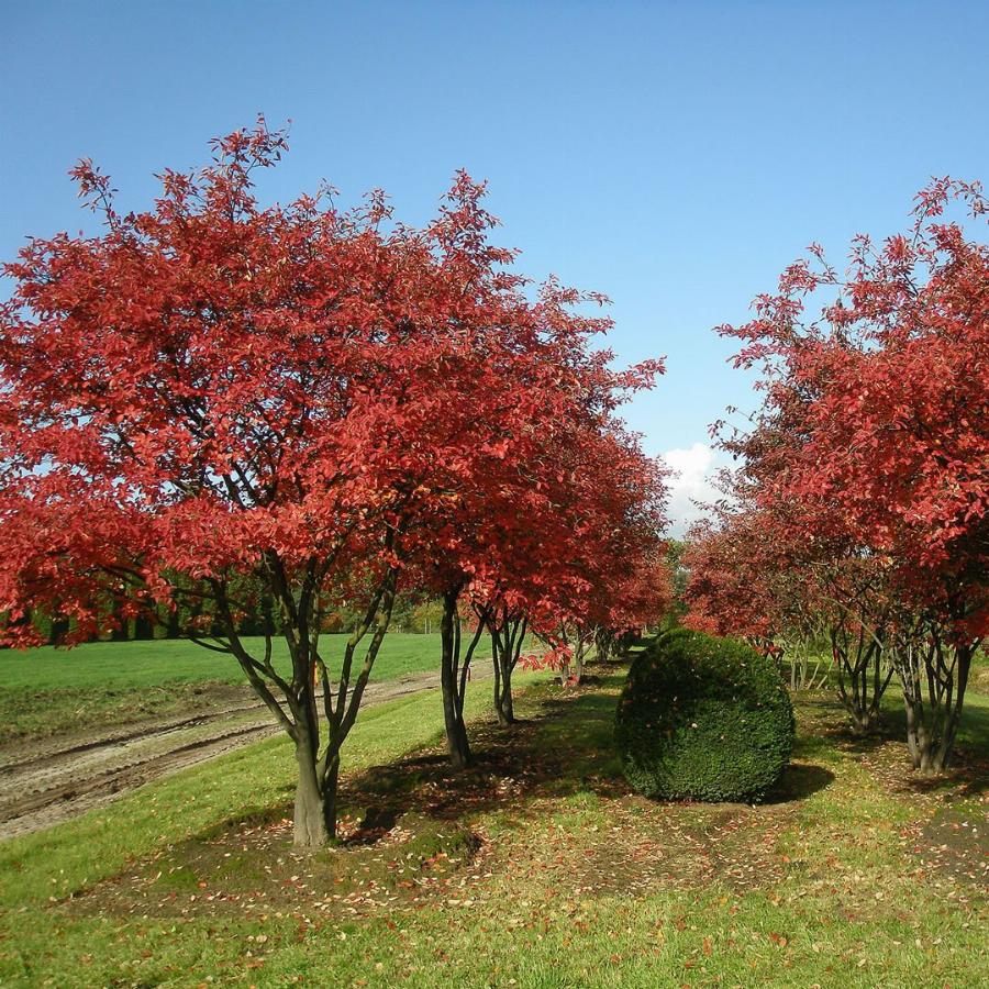 Дерево или кустарник до 9м высотой. Стройный прямой шершавый ствол серого цвета с горизонтальными ветвями. Это придает декоративность и в зимнее время. Широкоовальные листья имеют темно-бронзовую окраску,затем становятся темно-зелеными. Осенью появляется желтый и красный оттенок. Цветки белые,ягоды голубовато-черные и сочные,съедобные.