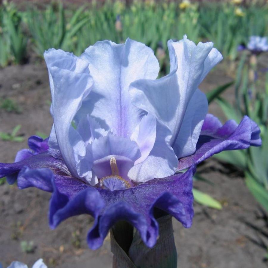 Цветки красивой формы, умеренно гофрированные .Высотой до 80 см. Период цветения май-июнь. Потрясающий! Бледно-синие стандарты с насыщенными синими прожилками на синих лепестках. Слегка гофрированные цветки со сладким ароматом рано зацветают, чтобы позже летом распуститься вновь.