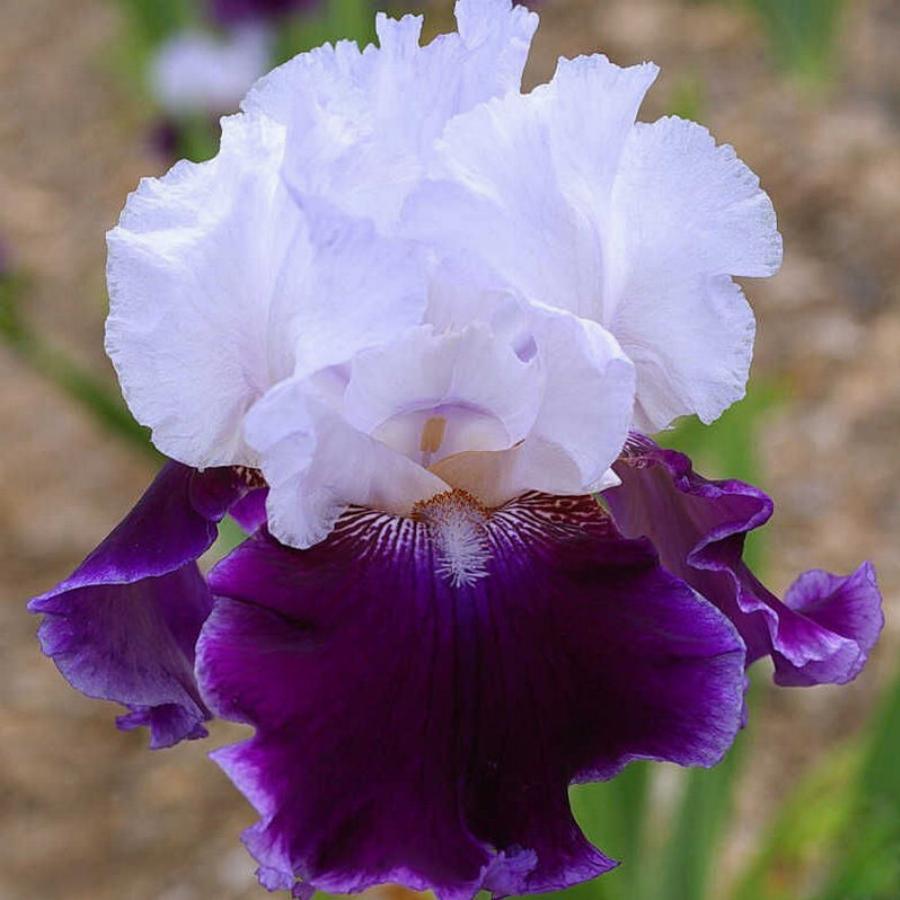 Средне-поздний высокорослый (до 120 см в высоту!) цветет пышными крупными цветками. Несмотря большие бутоны, на одном цветке их может быть 10-12 штук, аромат почти незаметен и очень деликатен. Это ирис с типом окраски амена, где гофрированные белые стандарты вздымаются над красиво драпирующимися фиолетовыми фолами. Сорт несложен в уходе, поэтому придется по душе даже начинающим садоводам. Выносливость и отличный иммунитет – дополнительные и крайне важные преимущества.