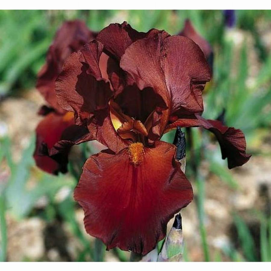 Цветок очень эффектный, однотонный, роскошного бархатистого темно-красновато-коричневого тона, слабо гофрирован. Высота растений до 70 — 120 см. Цветение июнь-июль.