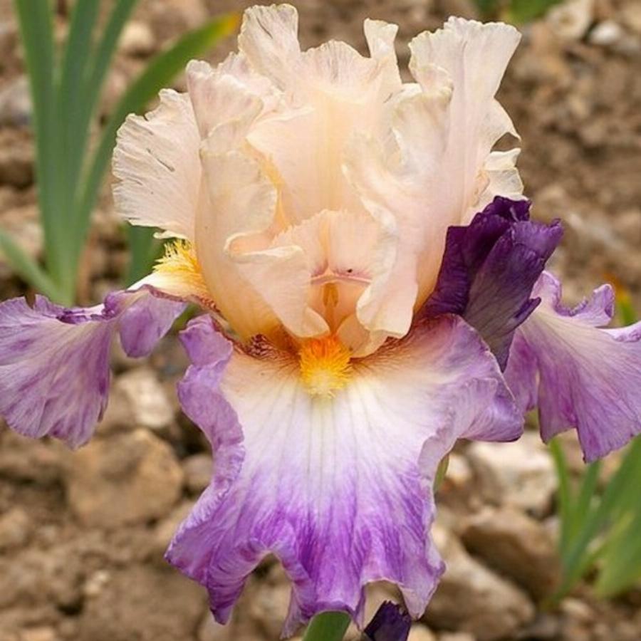 Высота 80см. Стандарты светло-розовато-бежевые. Фолы очень лёгкие, широкие, волнистые, бледно-розовато-лавандовые с большим белым центром. Бородка оранжевая в горле и светло-оранжевая в конце.