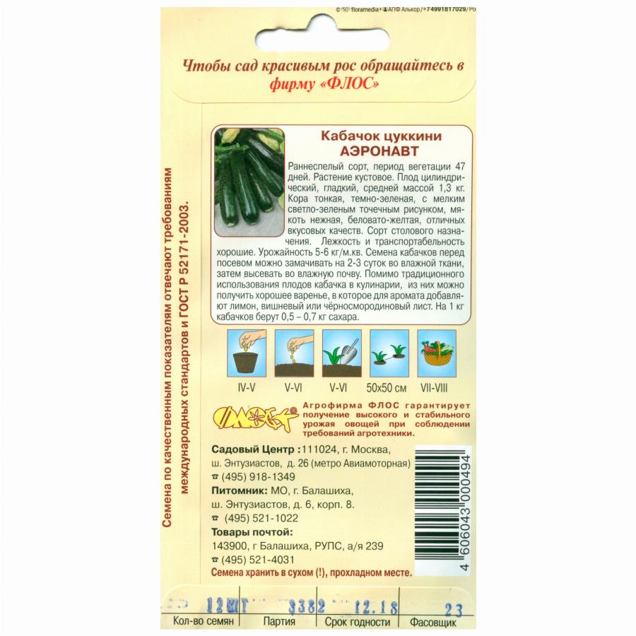 КАБАЧОК ЦУККИНИ АЭРОНАВТ 12 ШТ флос