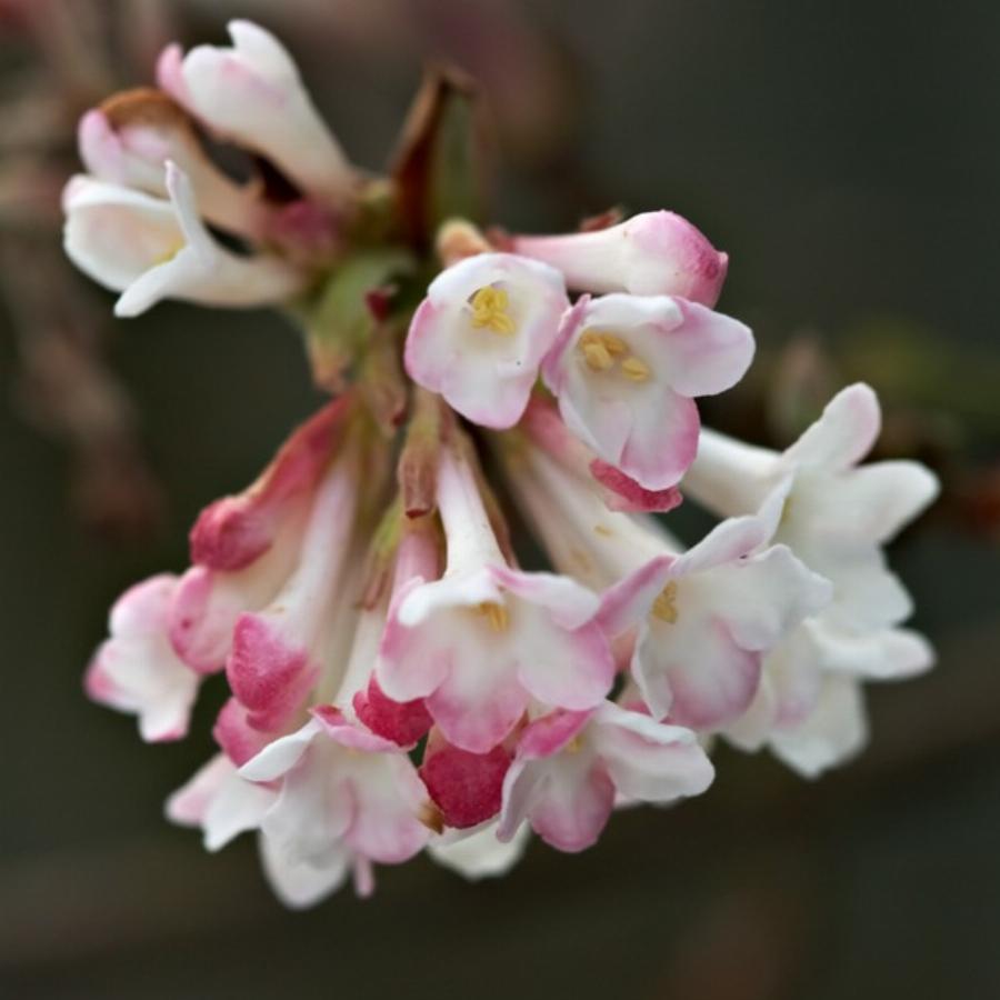 Средней величины кустарник с вертикально растущими побегами, высотой до 3 м и диаметром кроны до 2 м. Листья морщинистые, покрытые ворсинками, яйцевидно-заостренные, летом зеленые, осенью бронзовые. Цветёт до появления листьев, с первыми же зимними оттепелями. Цветы трубчатые, от нежно до ярко розовых, собранные в соцветия. Плоды декоративные, красного цвета, не съедобны.