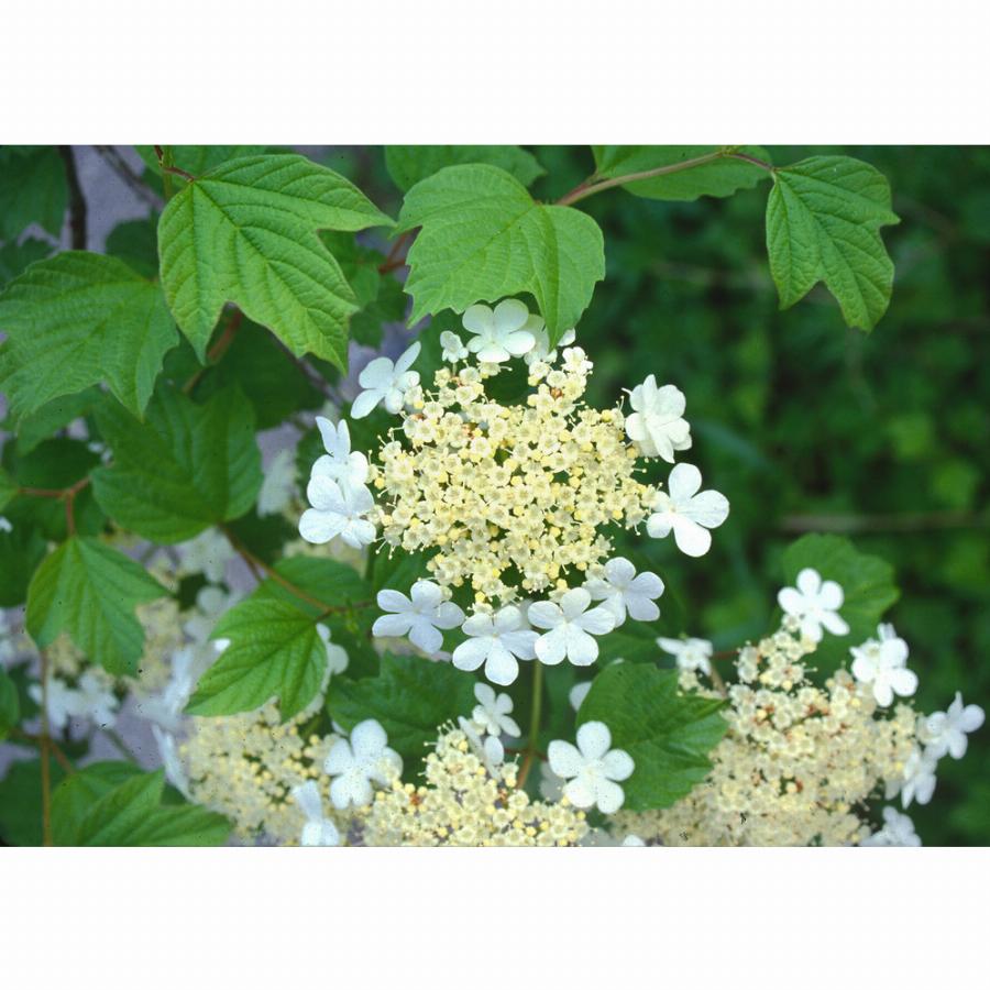 Листопадный раскидистый, рыхлый крупный кустарник, у которого с возрастом наружные ветви немного свисают вниз; образует отпрыски; растет быстро. Достигает высоты от 1,2 до 5м. Цветет в июне. Цветы — белые, собранные в зонтичные соцветия. Листья супротивно расположенные, пальчато-сложные, темно-зеленые, гладкие, черешковые. Осеняя окраска винно-красная или оранжево-красная. Предпочитает свежие, сырые, плодородные, от слабо кислых до сильно щелочных, известковые почвы. Светолюбива, но выносит полутень. Морозостойка, плохо переносит периоды летней засухи и жары. Плоды — шаровидные, сочные костянки ярко-красного цвета, съедобные. Косточка — округлая, сплюснутая с боков. Плоды созревают в августе — сентябре. Плодоносит ежегодно. Необходимо помнить, что калина нуждается в движении воздуха, иначе может сильно пострадать от тли.