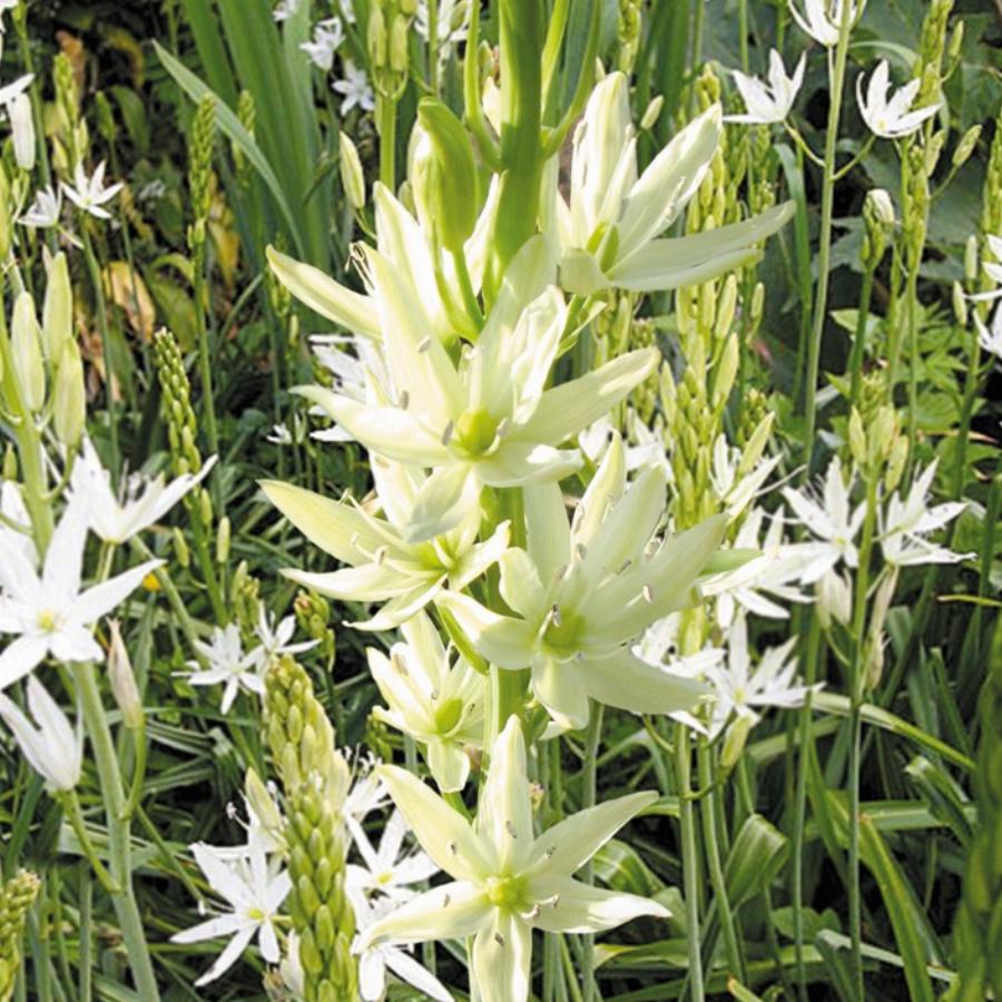 Является весенне-цветущим луковичным многолетником. Цветет в июне:в кисти высотой 70 см до 60 белых цветков с превлекательными желтыми пыльниками, диаметром до 4 см.