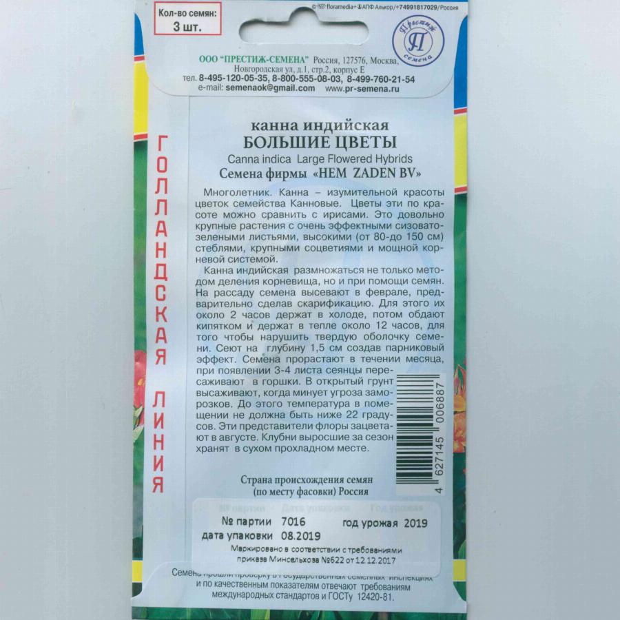КАННА ИНДИЙСКАЯ БОЛЬШИЕ ЦВЕТЫ 3 ШТ престиж