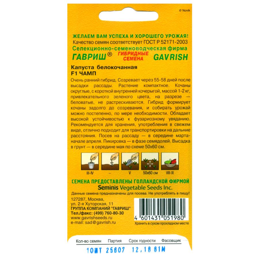 КАПУСТА Б/К ЧАМП F1 10 ШТ гавриш