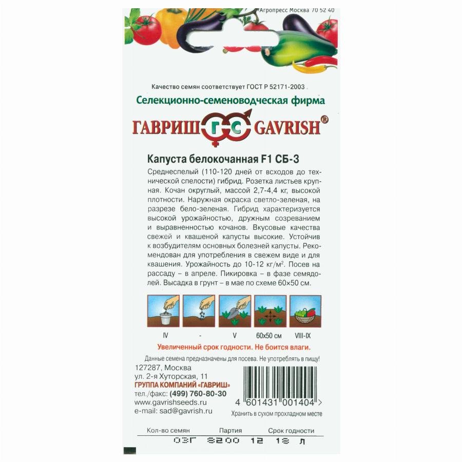 КАПУСТА Б/К СБ-3 F1 10 ШТ гавриш