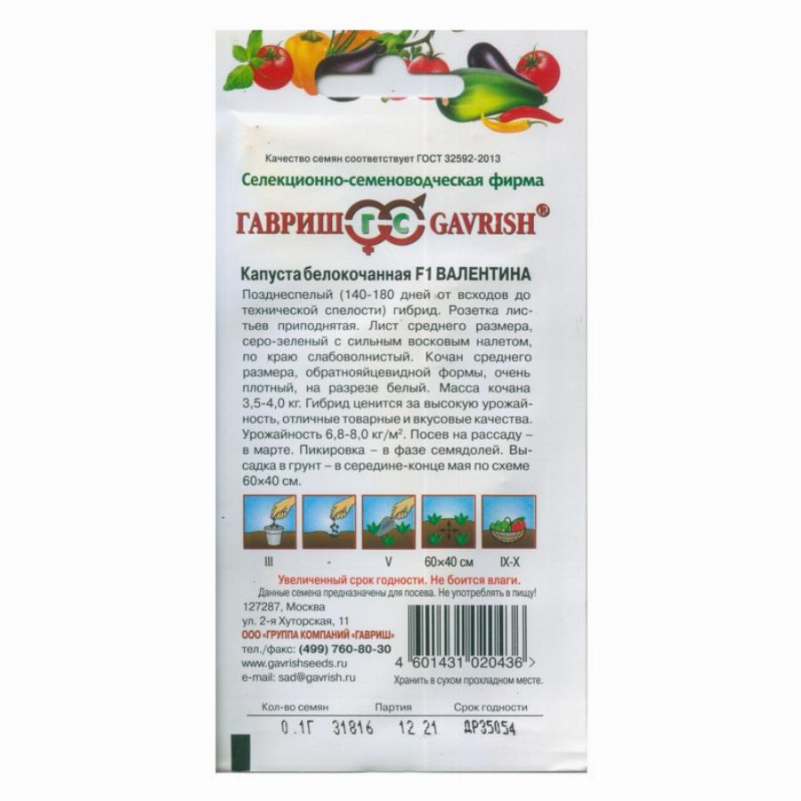 КАПУСТА Б/К ВАЛЕНТИНА F1 0,1 Г гавриш