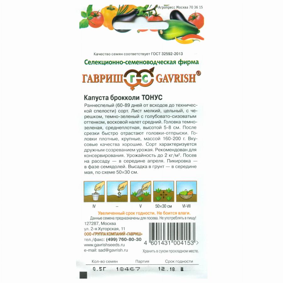 КАПУСТА БРОККОЛИ ТОНУС 0,5 Г гавриш