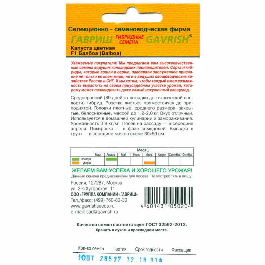 КАПУСТА ЦВЕТНАЯ БАЛБОА F1 10 ШТ гавриш