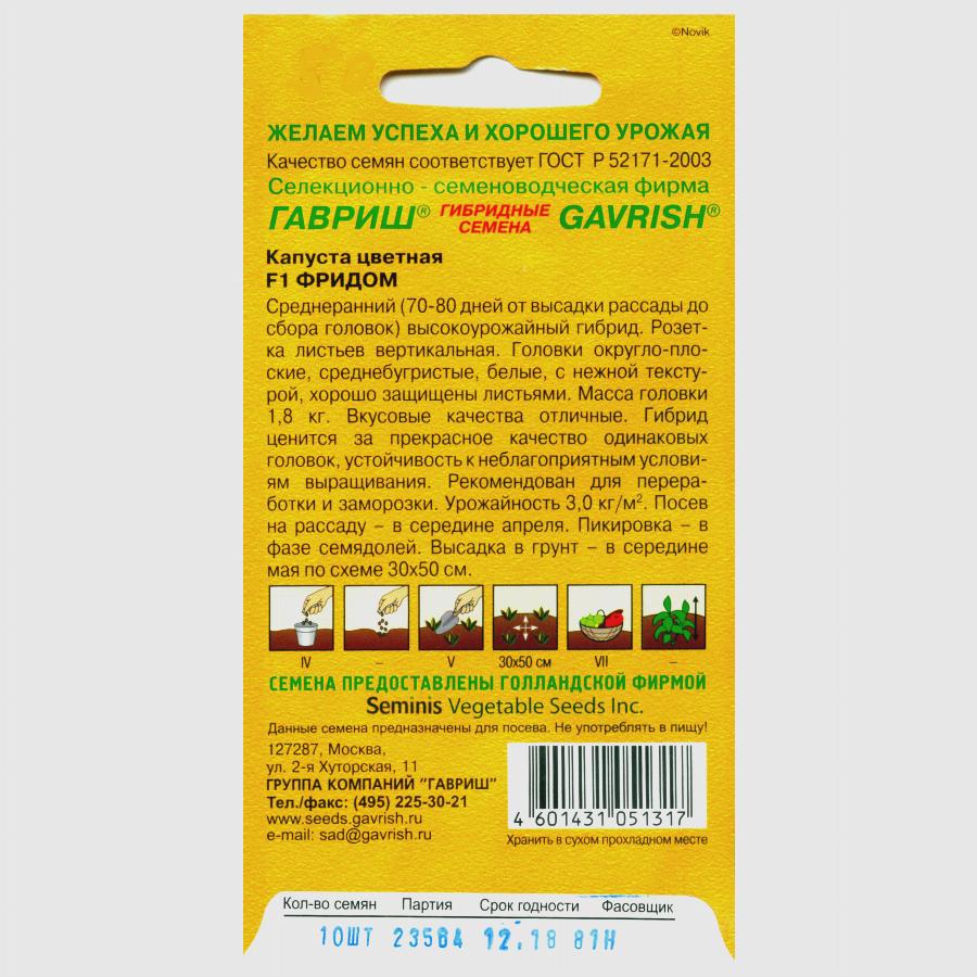 КАПУСТА ЦВЕТНАЯ ФРИДОМ F1 10 ШТ гавриш