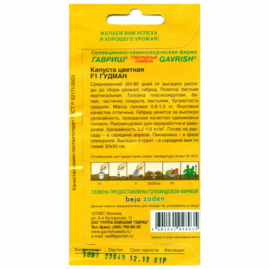 КАПУСТА ЦВЕТНАЯ ГУДМАН F1 10 ШТ гавриш