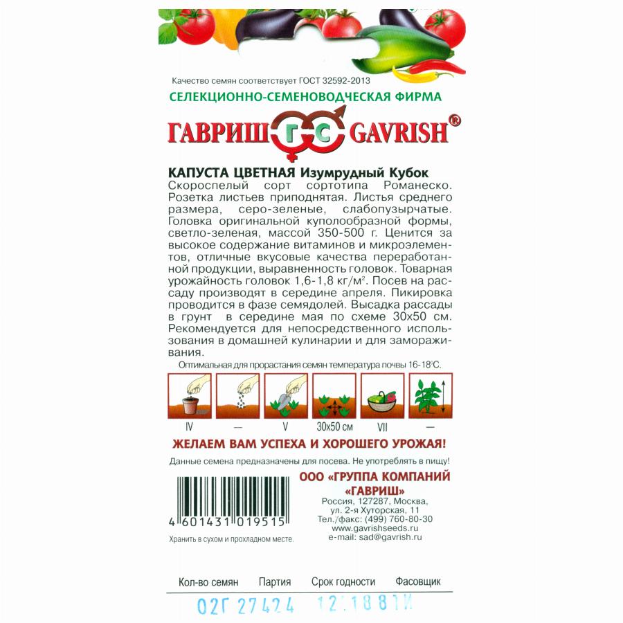 КАПУСТА ЦВЕТНАЯ ИЗУМРУДНЫЙ КУБОК 0,2 Г гавриш